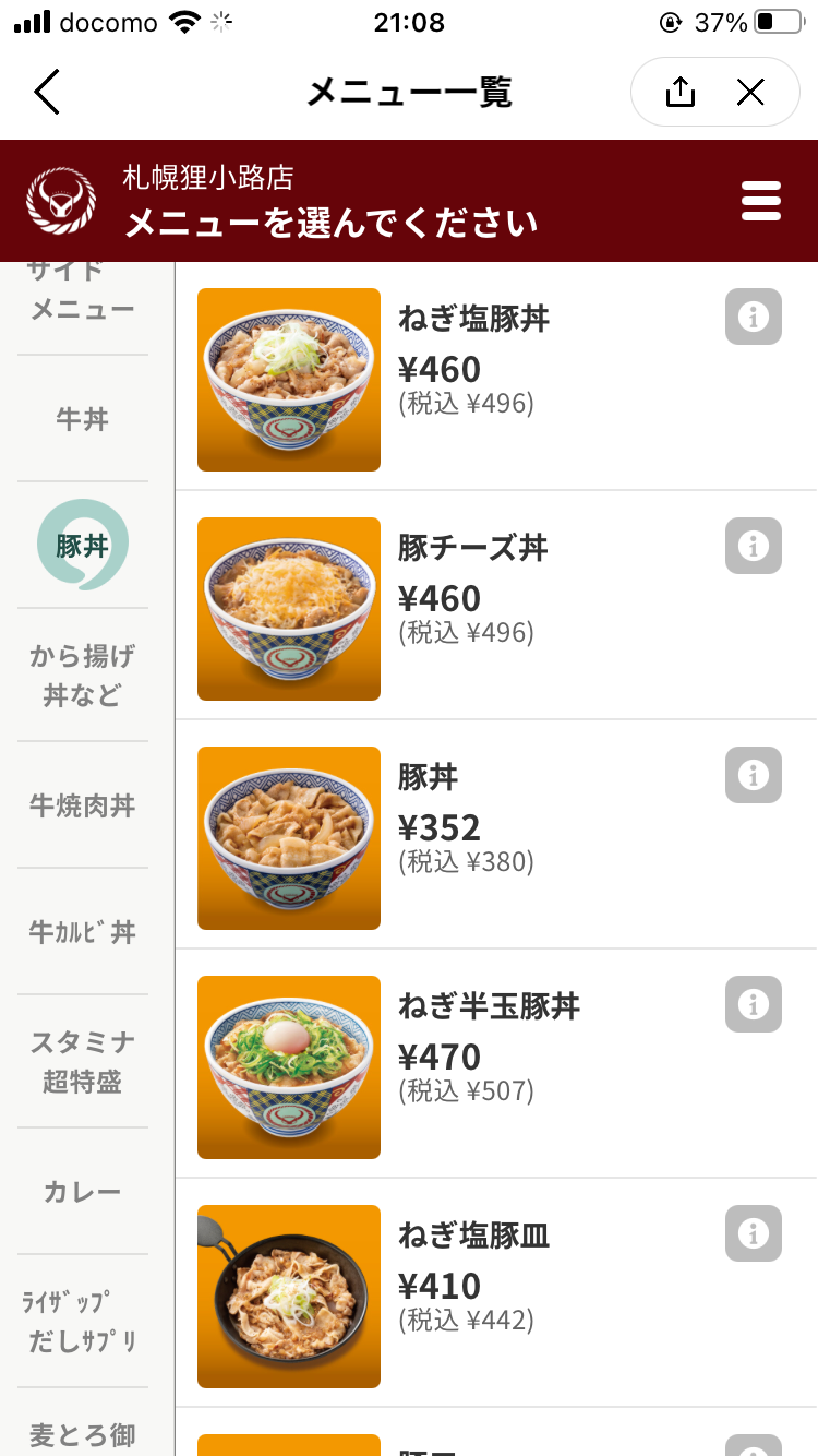仕事帰りでご飯を作るのが面倒なときなんかにサクッと食べたいのが牛丼。時間帯によっては混んでたりするので、モバイルオーダーを使えると便利です。