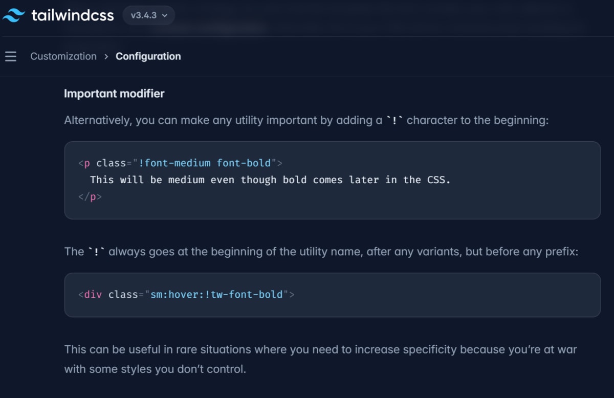 Tailwind CSSでのimportantの適用方法