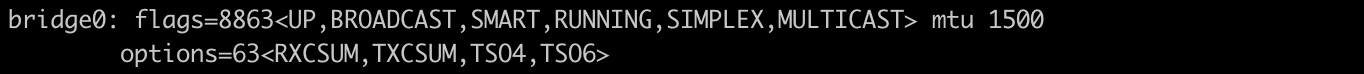 使用しているマシンがMacの場合は、ifconfigコマンドでdocker0というインターフェスを確認できます。これは先ほどdocker network lsコマンドで確認したデフォルトブリッジネットワークです。