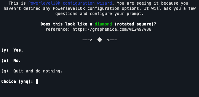 ターミナルを再起動すると、以下のようなセットアップウィザードが始まります。