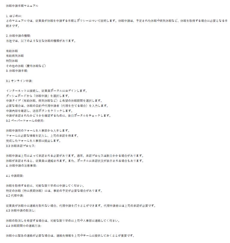 PDFファイルにある休暇申請の種類が回答として返ってきていますね😊