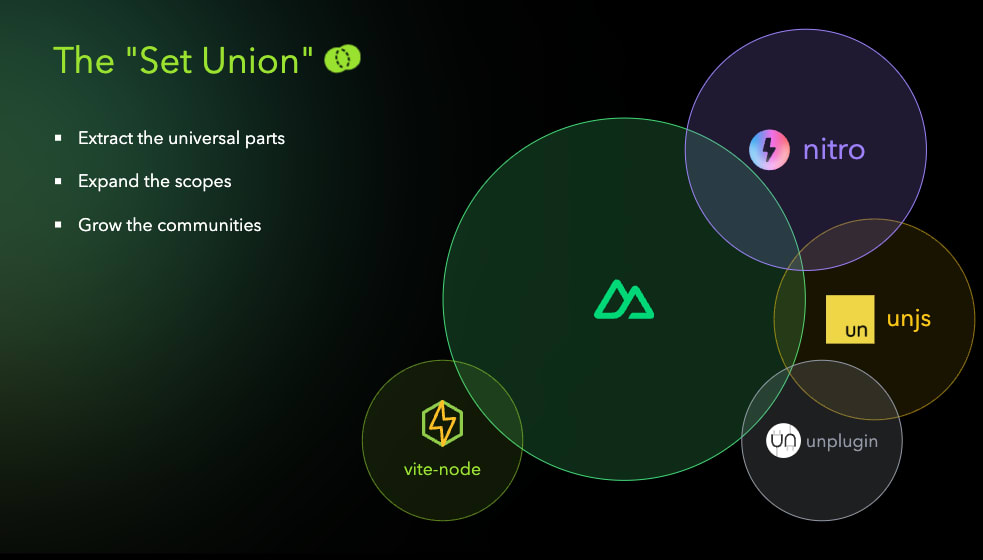 下記は Vue Fes Japan 2023 で Anthony Fu 氏の登壇資料「Anthony's Roads to Open Source - The Set Theory」から引用したものです。