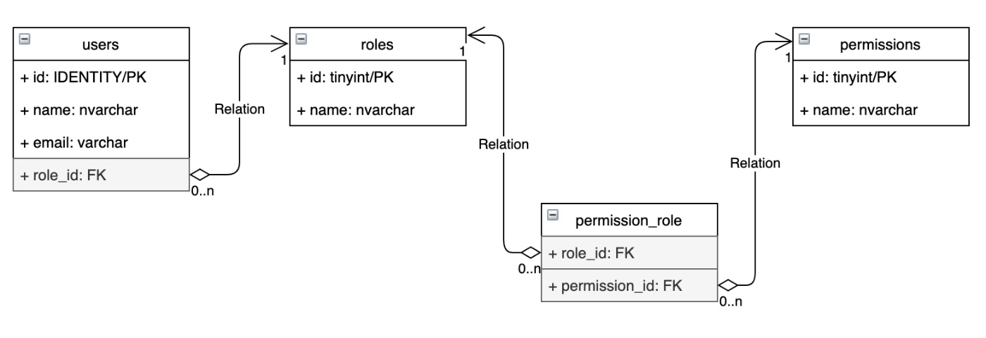 非常に大事でかつ若干複雑な部分となりますが、正しく関係を定義することで、権限から該当権限を持っているロールの取得と逆のパターンができるようになります。