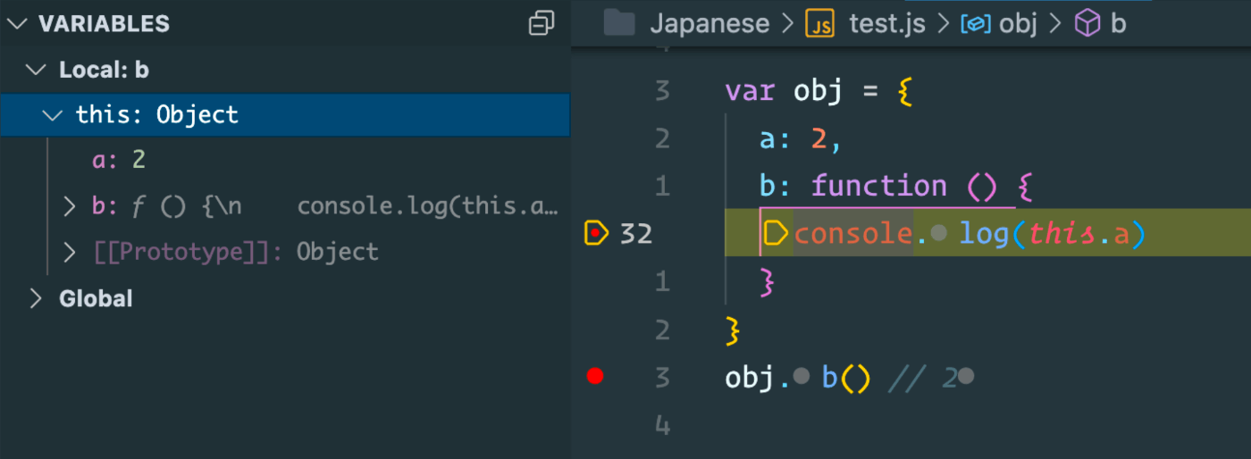 console.log(a + this.a) // 特に適応するルールがないのでデフォルトとして、thisはグローバルオブジェクトを指す