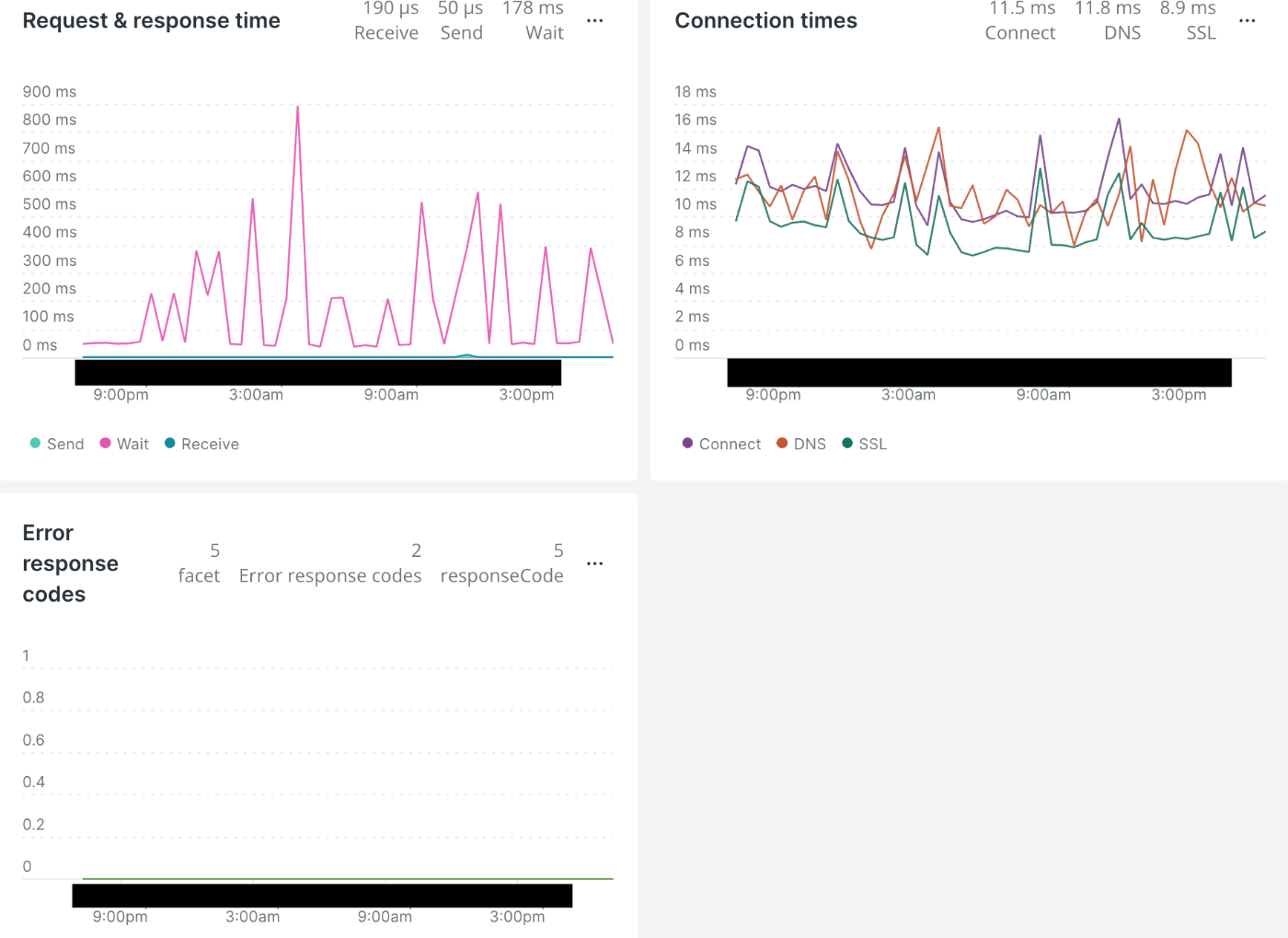 | Request & Response Time | 監視対象に対するリクエストの応答時間(リクエストが送信されてから、応答が完全に受信されるまでの総時間) |