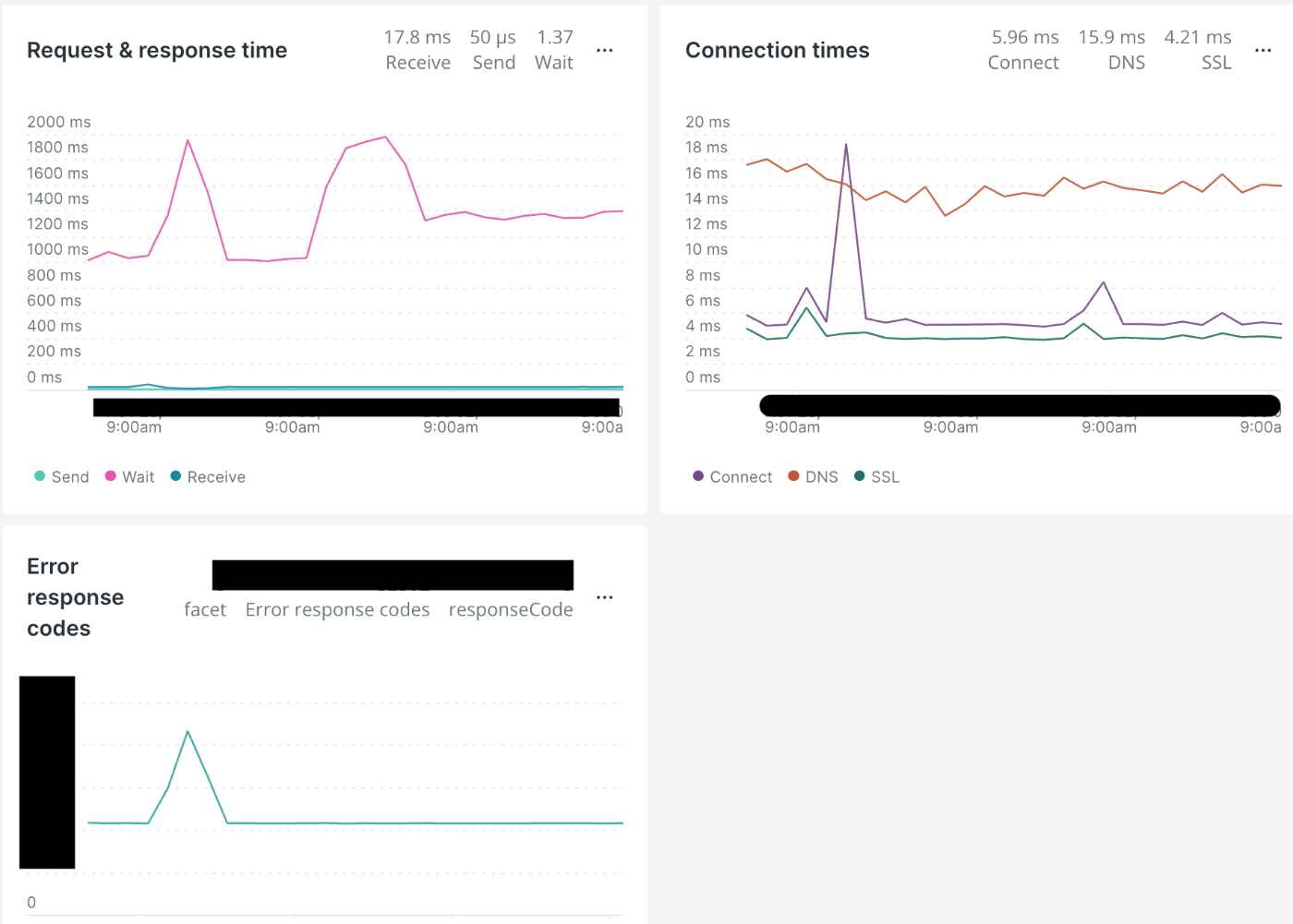 Error Response Codes の値が跳ね上がり、監視対象が正常に機能していないことがわかります。