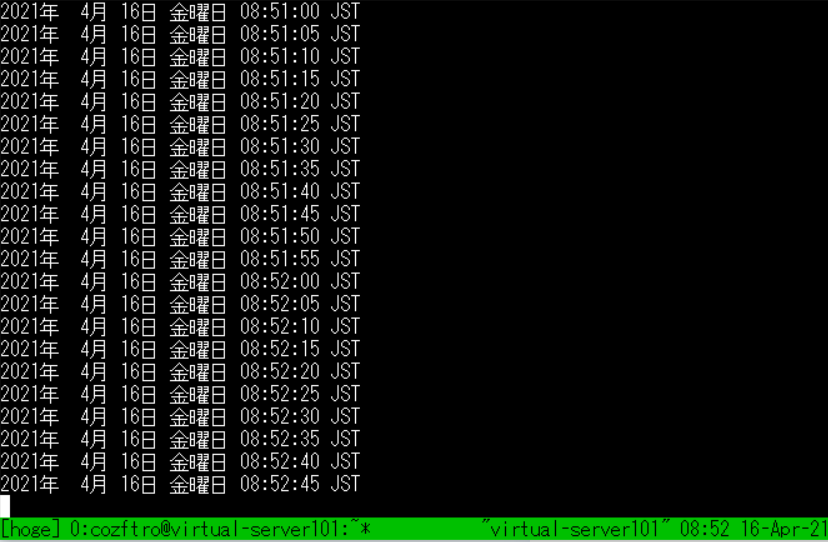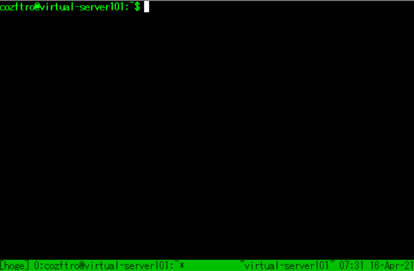 cozftro@virtual-server101:~$ tmux new-session -s hoge