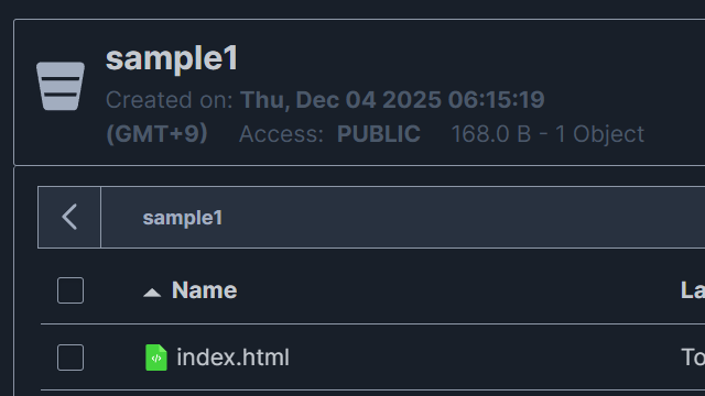 ここでは sample1 というバケットを作成