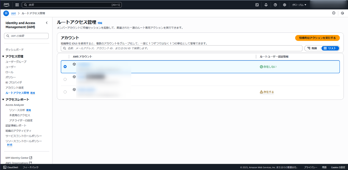 今回は、Root Access Management によるメンバーアカウントのルートユーザーの認証情報の削除をやってみました。