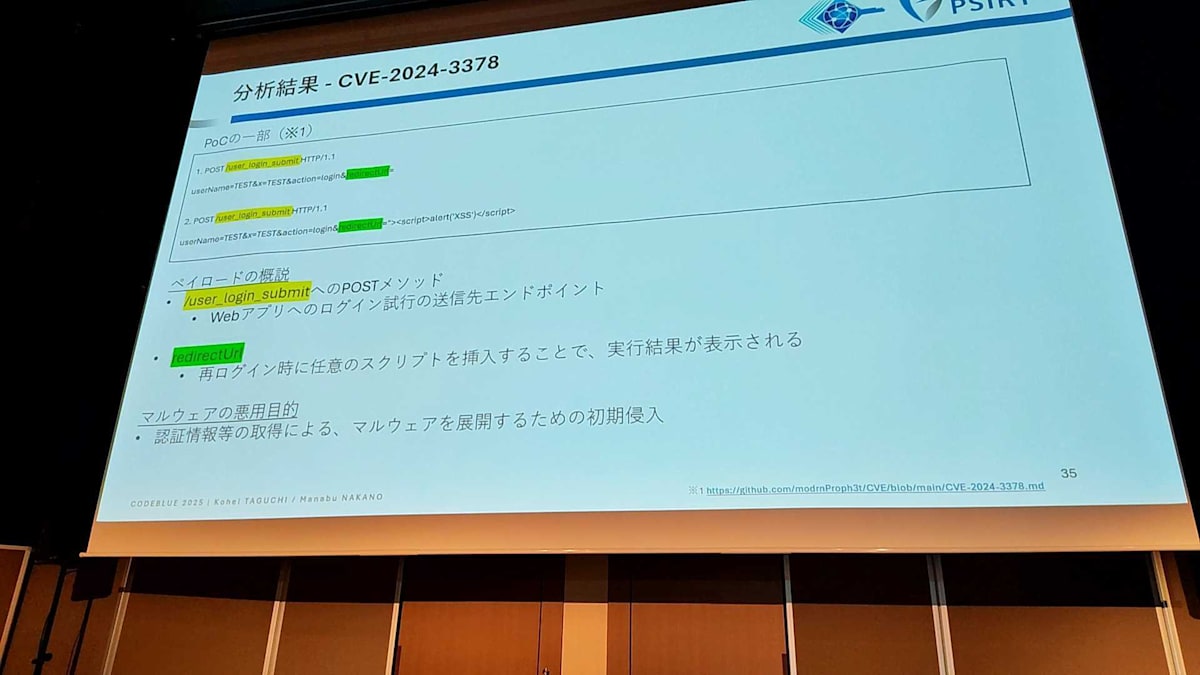 CVE-2024-3378 のケースだと、認証情報などの取得によるマルウェアを展開するための初期侵入に利用されています。