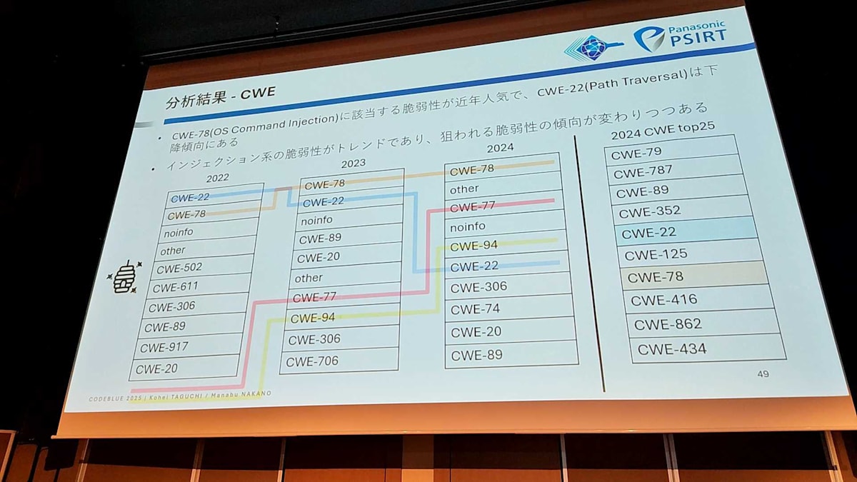 CWE の分析結果から OS コマンドインジェクションは上昇傾向、パストラバーサルは下降傾向も判明しました。