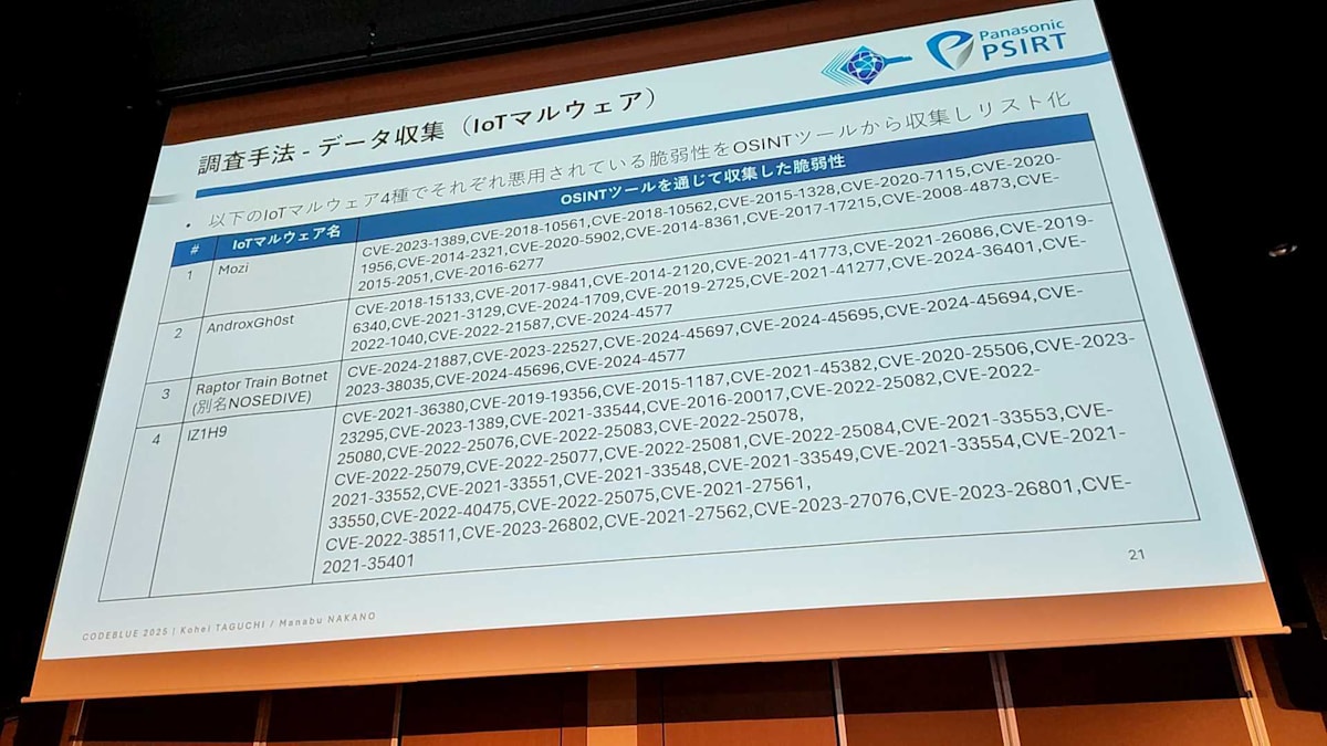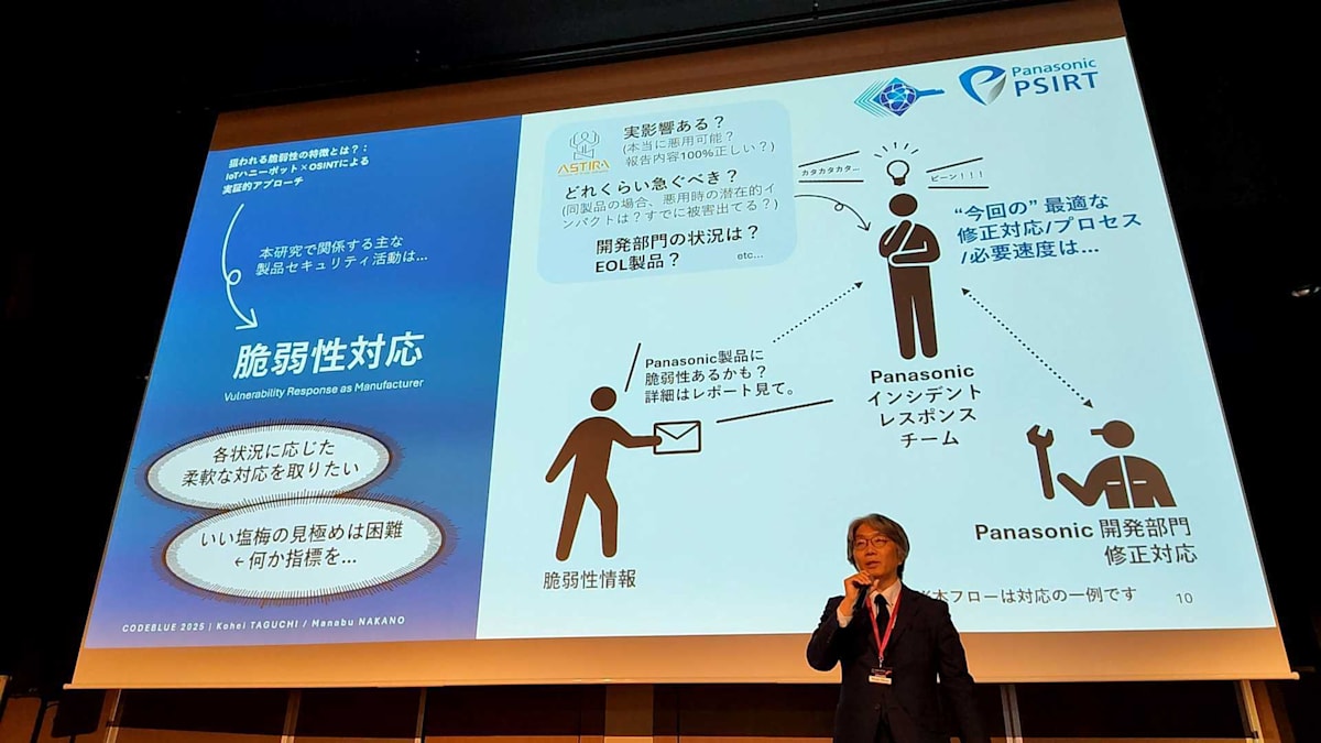 パナソニックさんでは、出荷後の製品の脆弱性を収集するところまでを担い、世の中の脅威分析に役立てている。