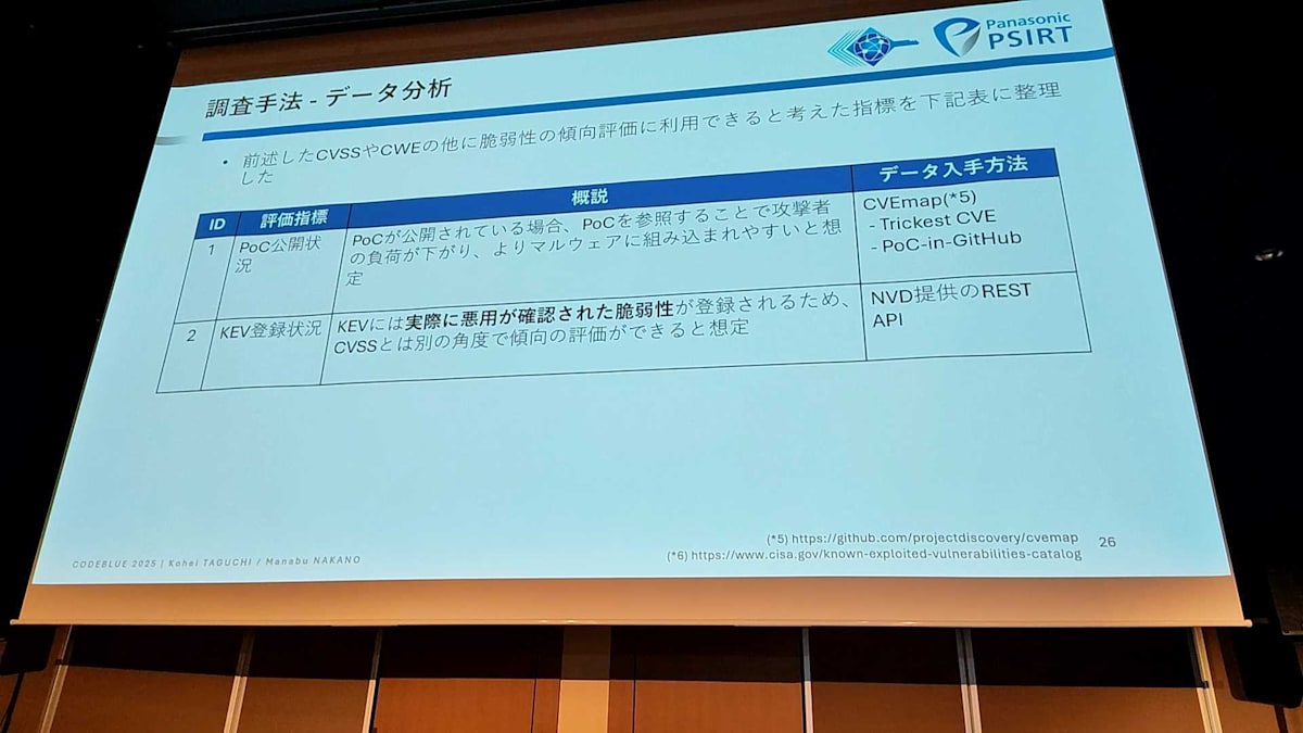 これにより、パナソニックにとって優先度の高い脆弱性の主な特徴を報告し、組織の脆弱性対応の意思決定に役立つ実践的な知見を提供します。