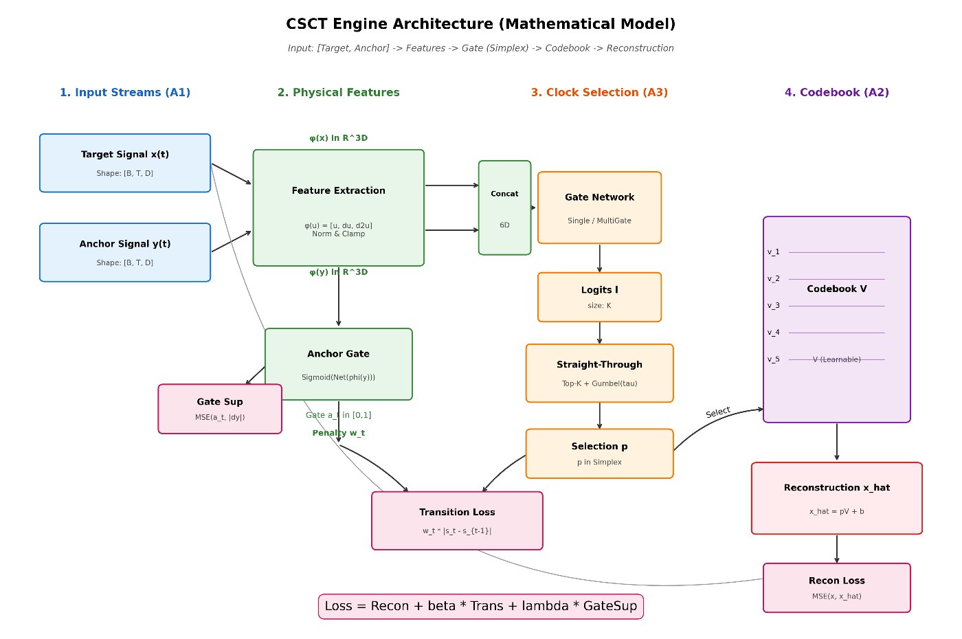 標準的な深層学習が負の重みを許容する無制約ベクトル空間で動作するのとは異なり、CSCTエンジンは非負制約(C ≥ 0)と単位和(Σp_k = 1)を強制する。