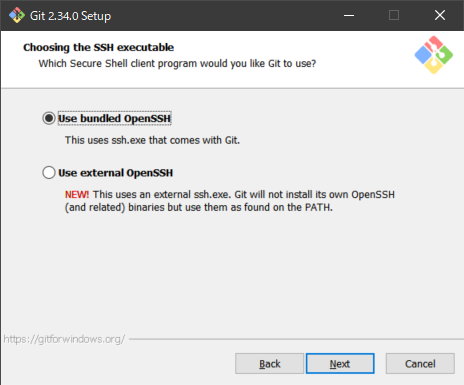 使うSSHクライアント選んでくれって?バンドルされてるのでええやろ(デフォルト)。Next。