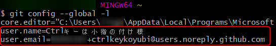git config --global user.name "ユーザー名"