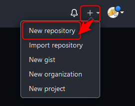 GitHubのページ右上の「+」をクリックし、「New repository」。