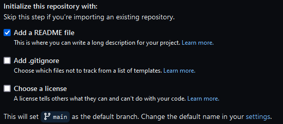 リポジトリの初期設定を選びます。Add a README fileくらいはチェックしておいて良いと思います。
