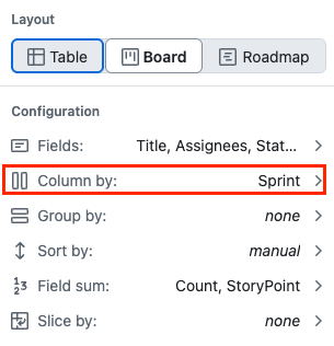 操作の手間: Zenhubでは自動的に行えていた部分がGitHub Projectsでは手動操作が必要になるケースがあり、例えば大量のIssueにまとめてラベルを付与するのが難しいという課題があります。しかし、スプリントのようなシングルセレクトのカスタムフィールドについては、その項目を軸としたボードビューを作成し、対象のIssueをまとめて移動させることで、一度にカスタムフィールドの値を付与することが可能です。