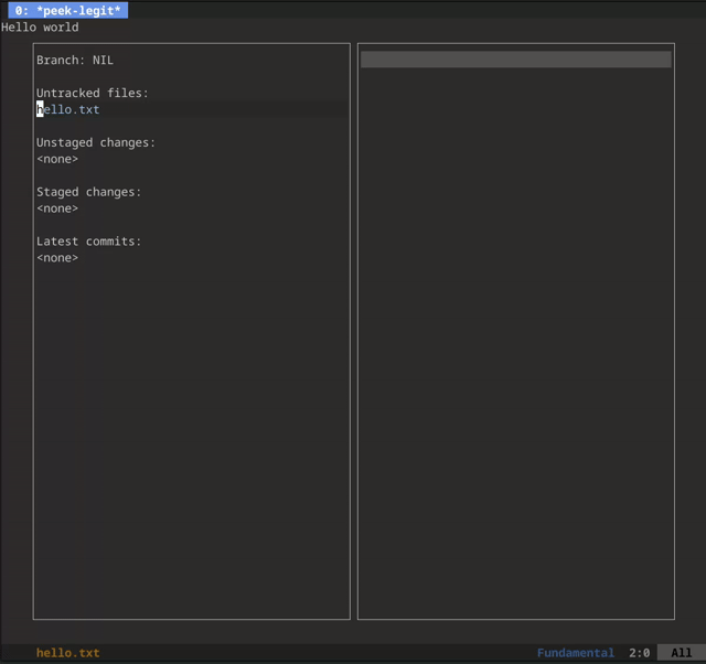 git管理下のファイルを開いているときにC-x gを実行すると以下のような画面が表示されます。