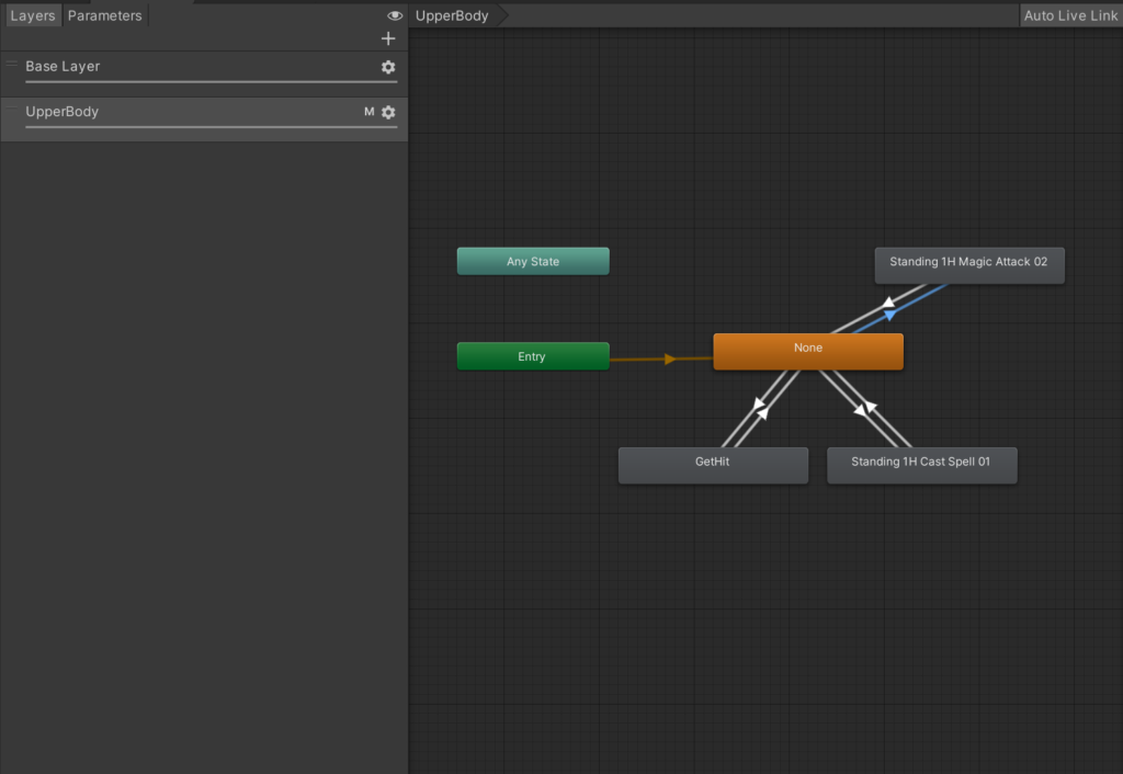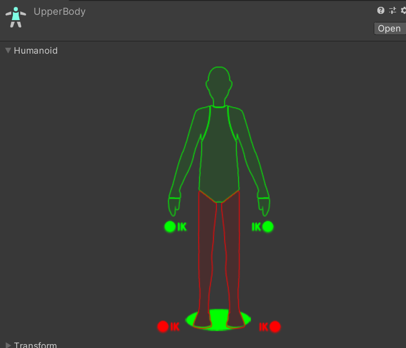 AvaterMaskを設定する時は正しくAvaterMaskのマスクを設定しないと変な挙動になります。 ImportSettingまたは新たにAvaterMaskを作成します。例えば走っている最中に上半身だけ変更したい場合はこのうようにUpperbodyを作成