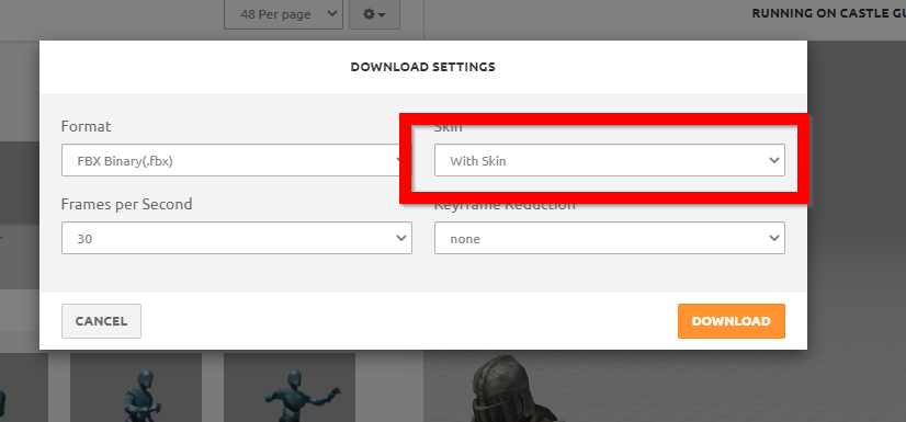 ・WithSkinを選択してFBXforUnityを選択してダウンロードしている事を確認
