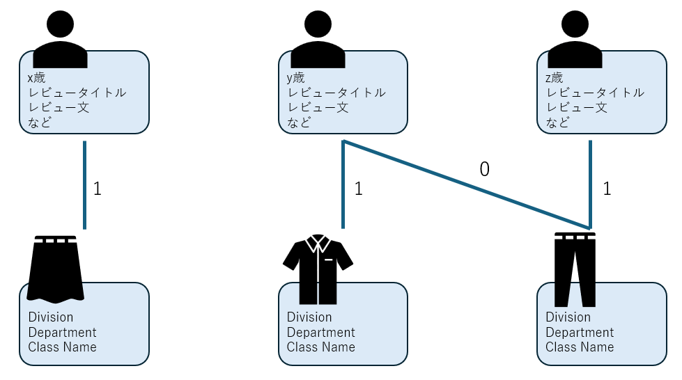 - レビュワー: 特徴量として、年齢やベクトル化されたレビュー文などを持つ。
