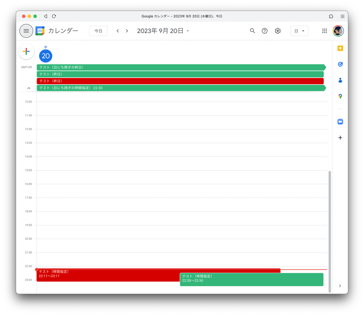 終日イベントが扱いづらく、formatEvent関数の作成に少し苦労しましたが、無事に完成できました!