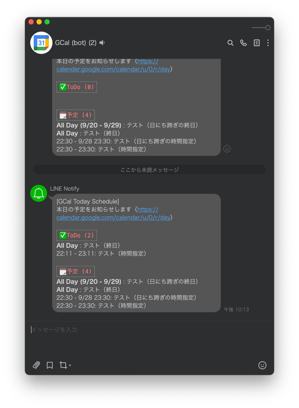 イベントの数が 0 以上の場合は、LINE に通知を送ります。