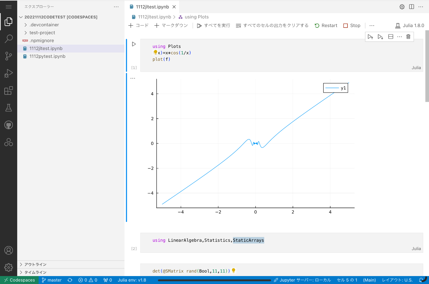 GitHub CodespacesでJuliaを使ってみた。
