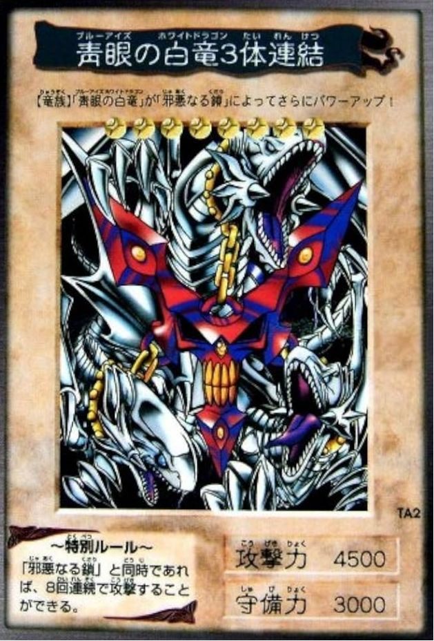 3体のブルーアイズは鎖で繋がっており、連続攻撃ができます。