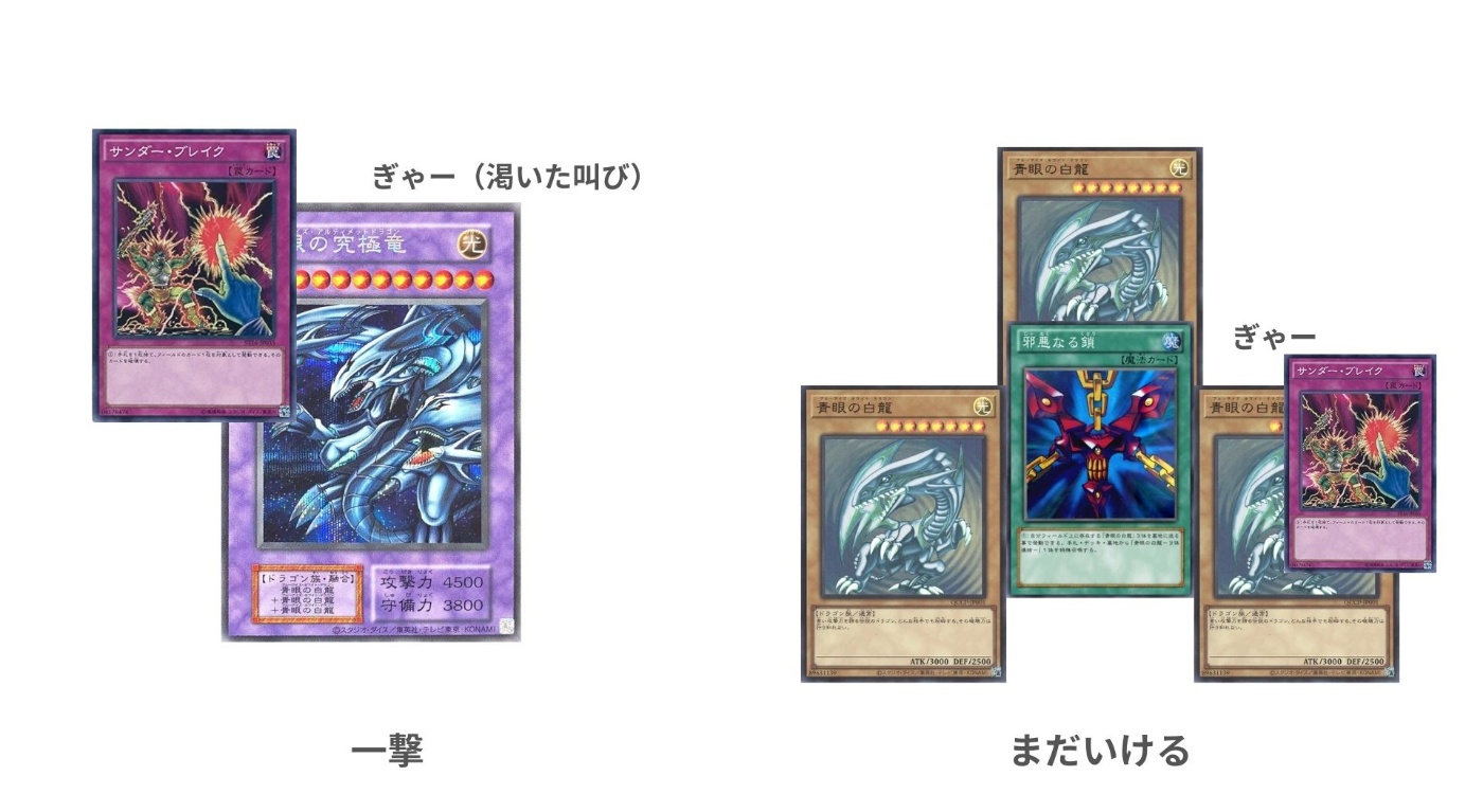 調べるなかで「これ遊戯王のブルーアイズホワイトドラゴンじゃん」と思ったので、それで例えます。