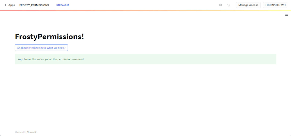 st.success('Yup! Looks like we\'ve got all the permissions we need')