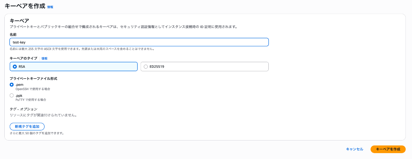 名前 | test-key | キーペアの名前です。 |