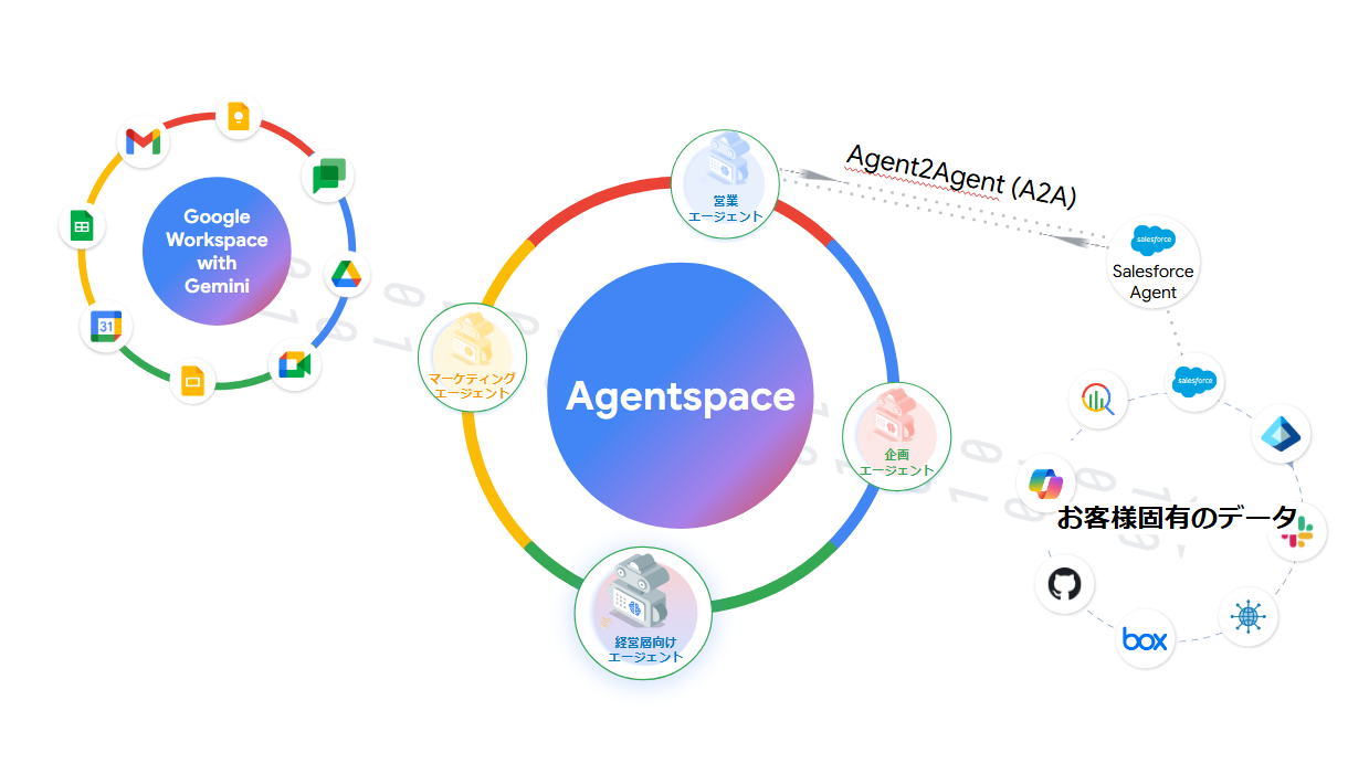 ここからは少し担当者の感想ですが、この発表には心からワクワクさせられました。というのも、昨年末に発表され進化を続けてきた「Agentspace」の機能が、このGemini Enterpriseの中核に採用されたのです。これはもう、単なるお利口なAIチャットの時代は終わり。AIが自分で考えて、他のAIと連携しながら自律的に仕事を進める「AIエージェント」が主役の時代が本格的に始まる、というGoogleからの力強いメッセージだと感じています。