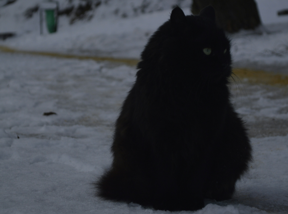 薄暗くずんぐりとした黒猫なので勘違いしないかと期待したのですが、見抜いてる!