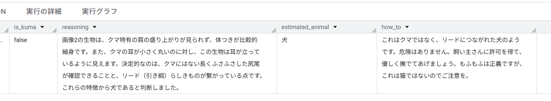 'is_kuma BOOL, reasoning STRING, estimated_animal STRING, how_to STRING' AS output_schema