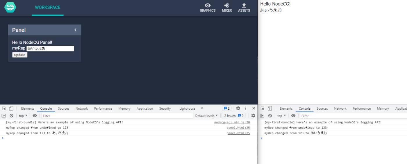 でNodeCGのコンテナを起動しておいて、作成したbundleを変更してみます。