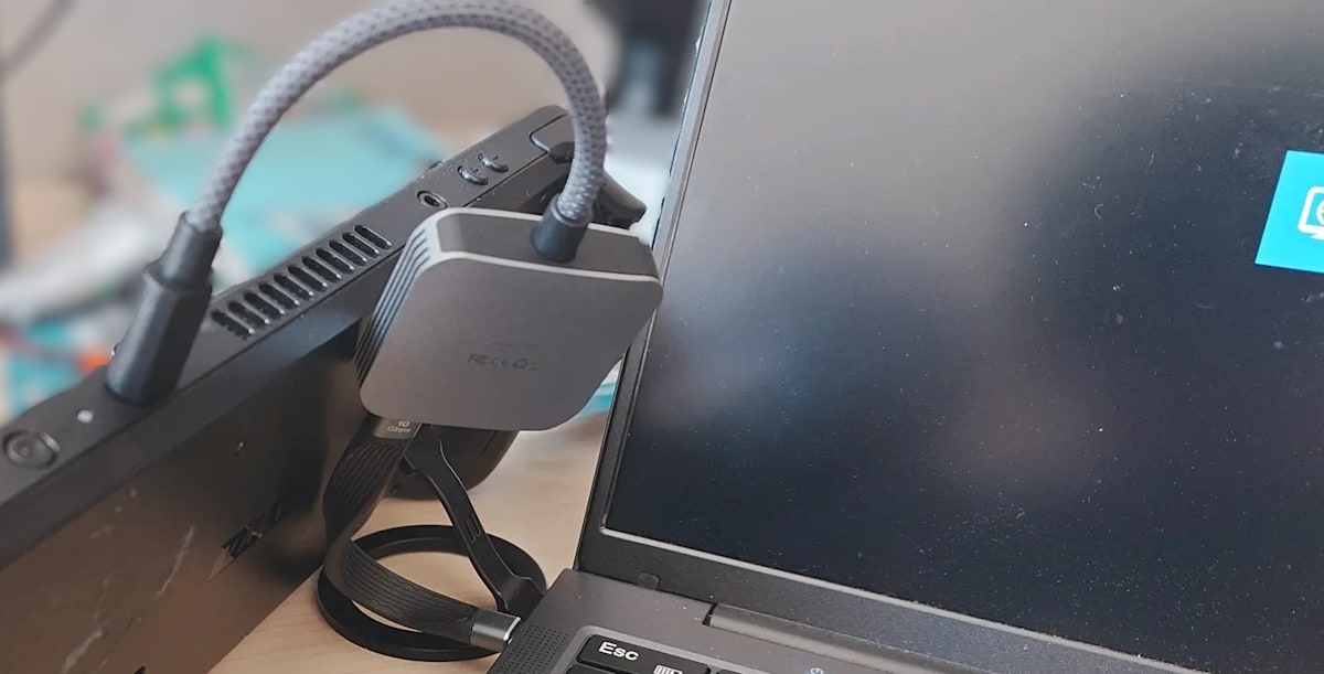 こちらのデバイスを使えば、このように、SteamDeckが14インチノートパソコンに早変わり!