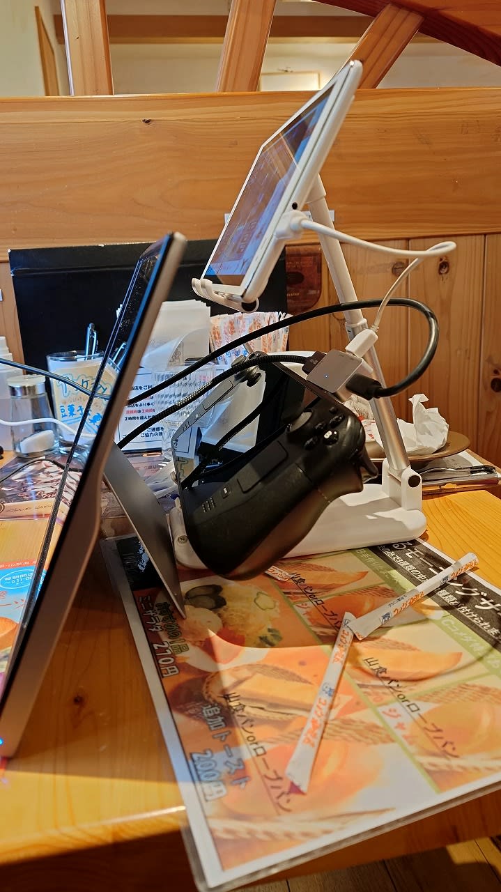 まだ、この頃は、ケーブルがめっちゃ多かったんですよね。(給電と映像出力のケーブル、タブレットとの通信ケーブル・・・準備だけで一苦労。