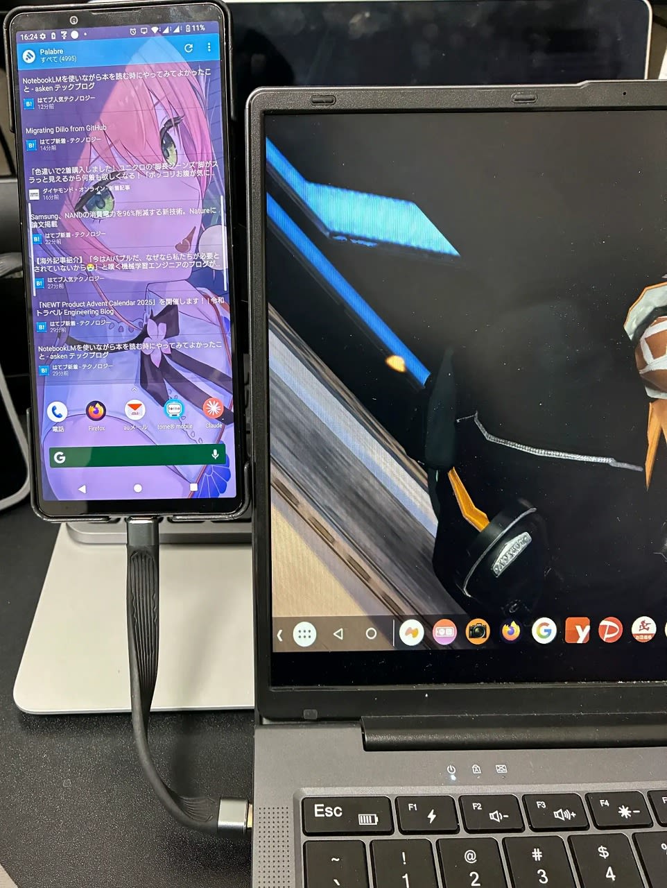 本来は、Androidスマートフォンをノートパソコンのように使うものなのですが、Type-C一本で画面出力できるものであれば、何でも行けます。