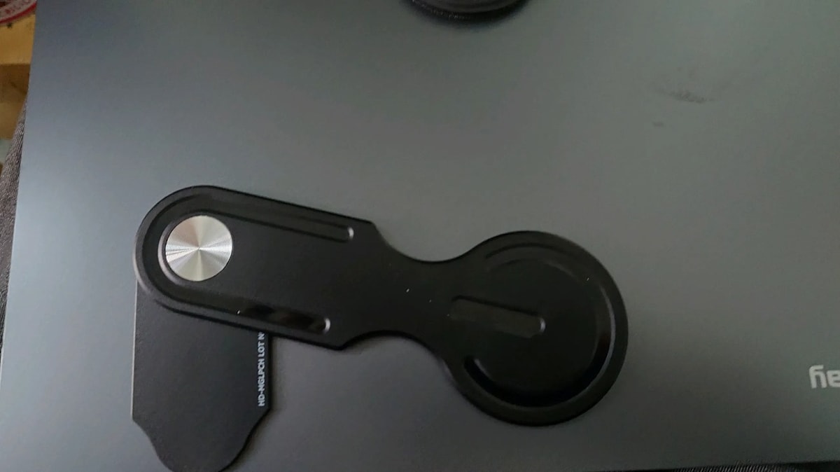 磁石でスマートフォンをマウントしてPC横に浮かせることができる器具です。