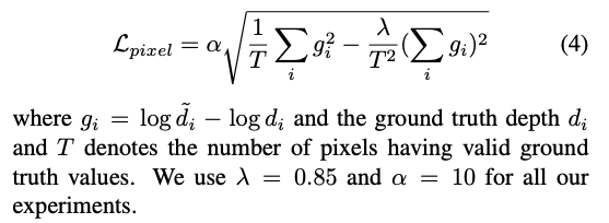 損失関数には先行研究でも用いられているScale-Invariant lossを用いる。