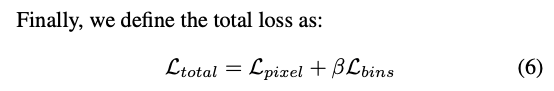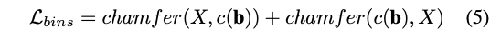 同時に、各画像から計算したビン幅の分布と正解の深度分布との誤差も計算する。bi-directional Chamfer Lossを用いる(詳細は省略)。これら2つを合わせて最終的な損失関数とする。