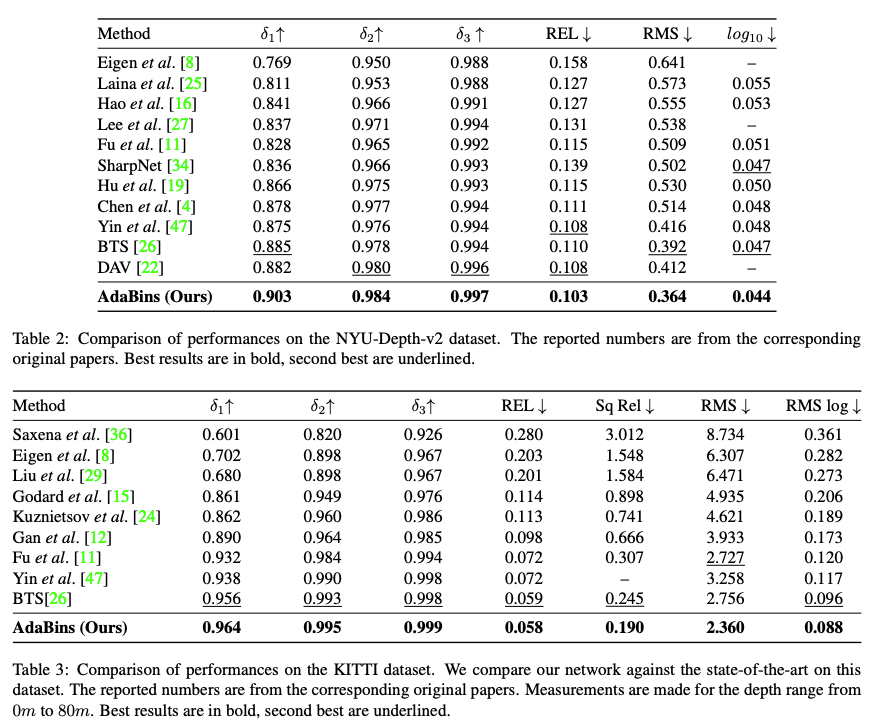 - 入力画像に対して適応的にビンの間隔を計算できるモジュール:AdaBinsを提案