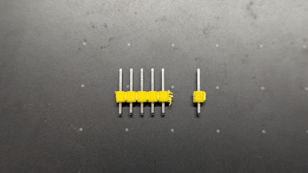 まず、RP2040-Zeroに付属のピンヘッダーを折り、固定用ピンを2つ作成します。