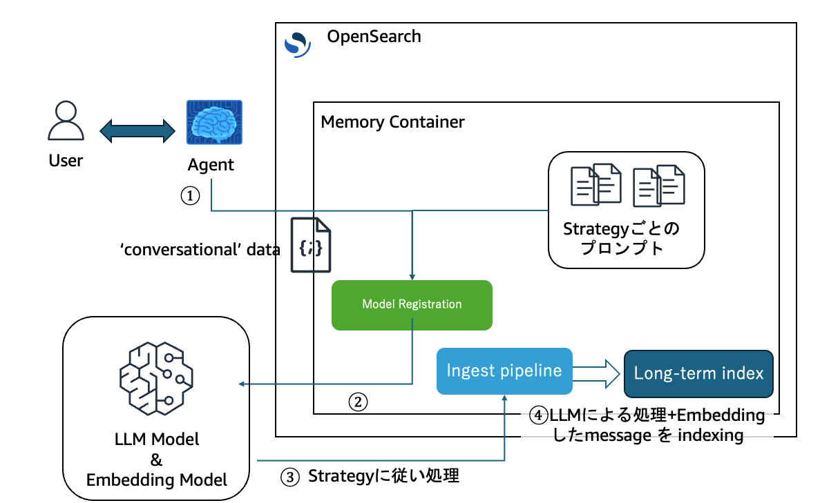 OpenSearch の Agentic Memory の機能は、エージェントのメモリとしてOpenSearchを利用するために必要なコンポーネントのセットとともに、非構造データを処理して投入する仕組みを簡単に利用することができる機能でした。