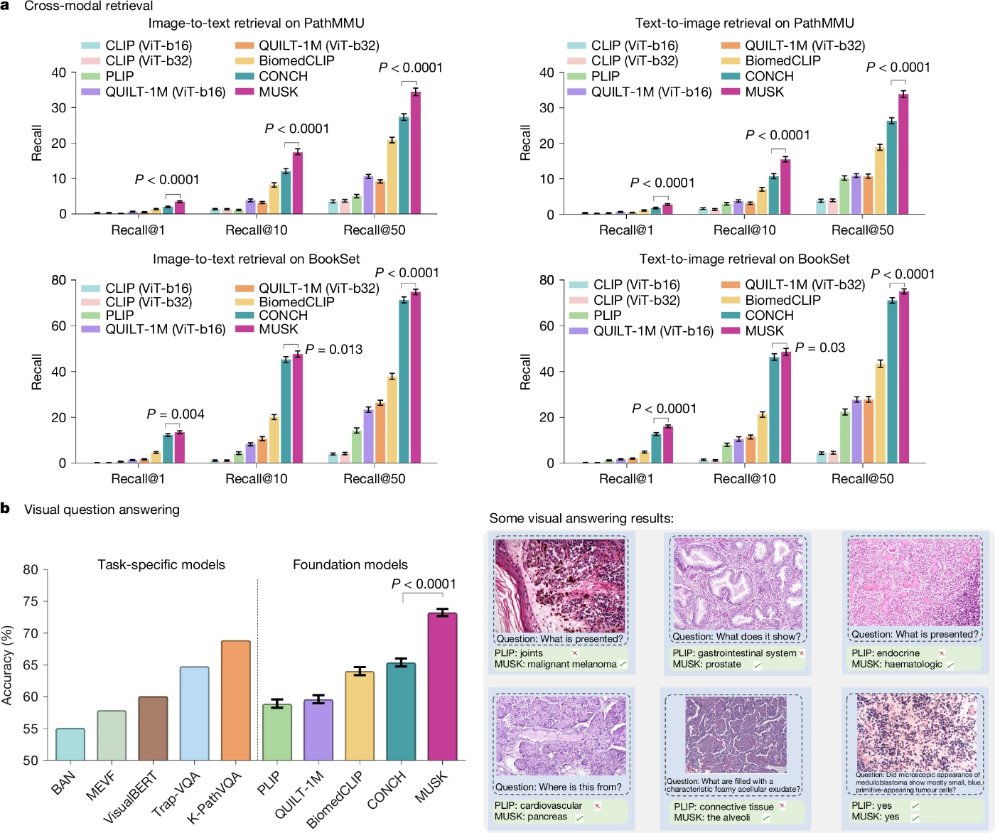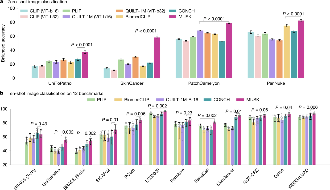 画像とテキストの検索、視覚質問応答、画像分類、分子バイオマーカー予測など、幅広いタスクにおいて高い性能を示した。