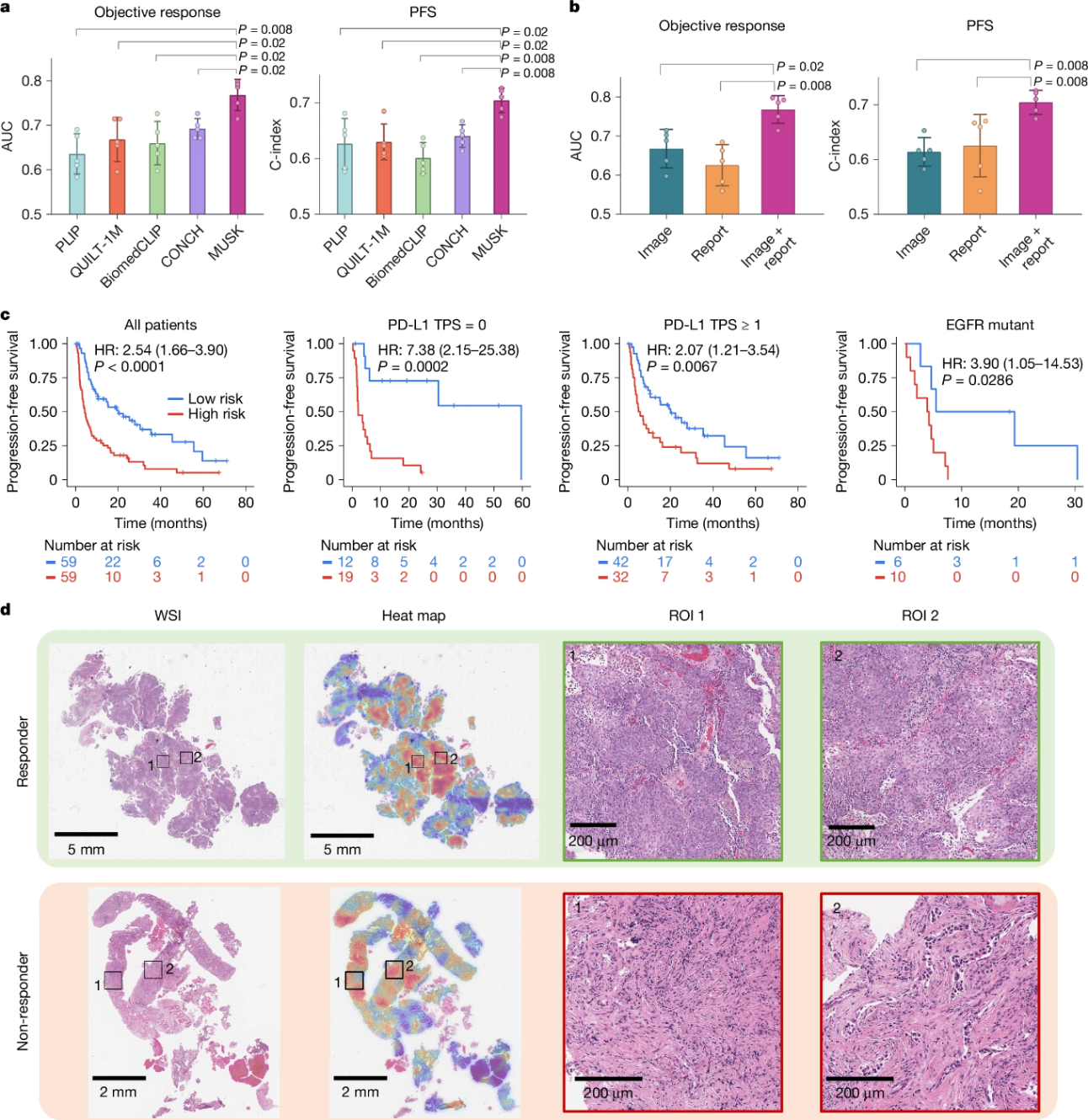 - その結果、画像とテキストの検索、視覚質問応答、画像分類、分子バイオマーカー予測など、23のベンチマークにおいて最先端の性能を達成した。さらに、黒色腫の再発予測、16種類の癌の予後予測、肺癌と胃食道癌における免疫療法反応予測においても優れた性能を示した。