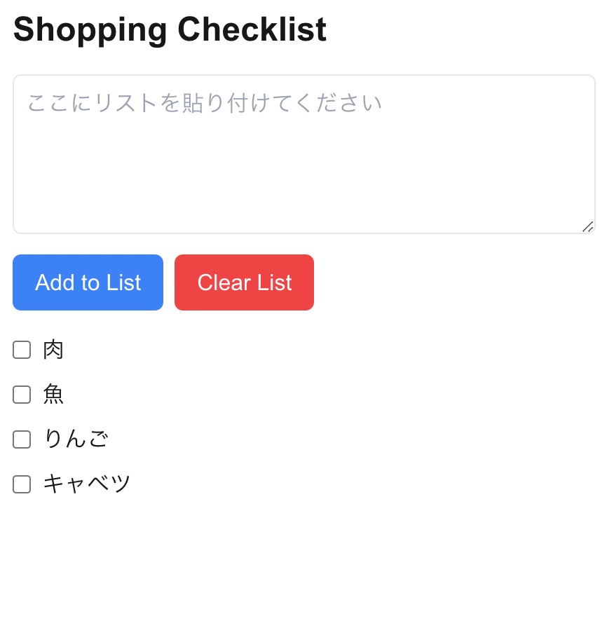 その後にボタンを押してチェックリストが表示されるだけのアプリです。
